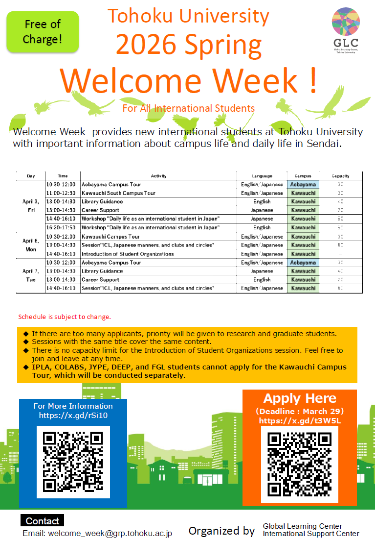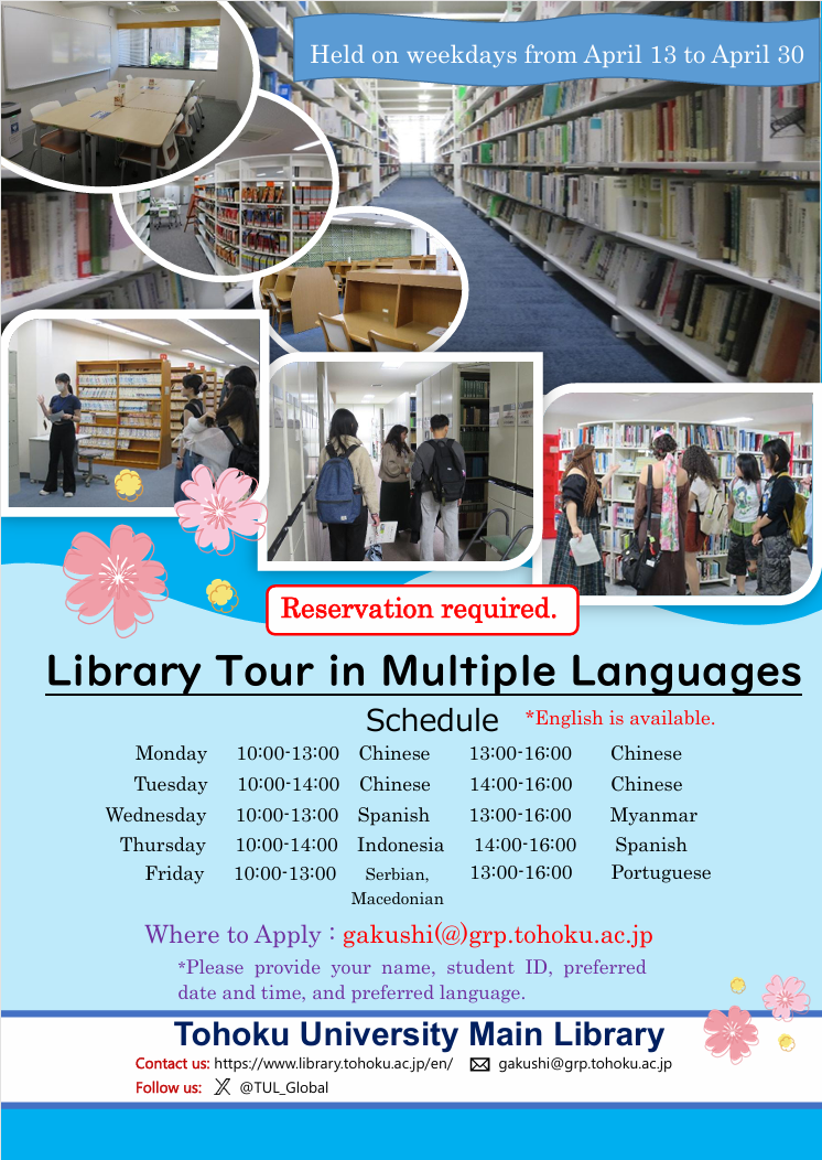 Place: Tohoku University Main Library's Global Learning Room (2nd floor)