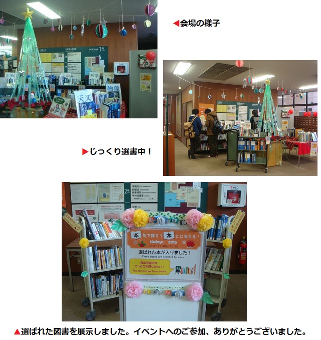 2015年11月30日(月)〜12月11日(金)の期間、利用者による選書イベント「本気で探す?本とに会える!10days 2015」を開催しました。